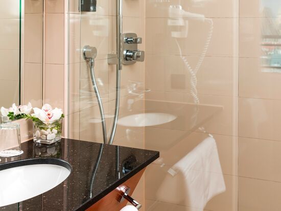 Die Grundausstattung aller Zimmer im Hotel Am Parkring beinhaltet: Bad oder Dusche und WC, Minibar, Telefon, Haarföhn, Safe, TV-Gerät, gratis WLAN und individuell steuerbare Klimaanlage.